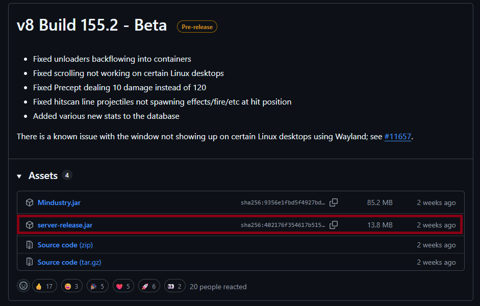 wget "https://github.com/Anuken/Mindustry/releases/download/v155.2/server-release.jar"三、启动服务端