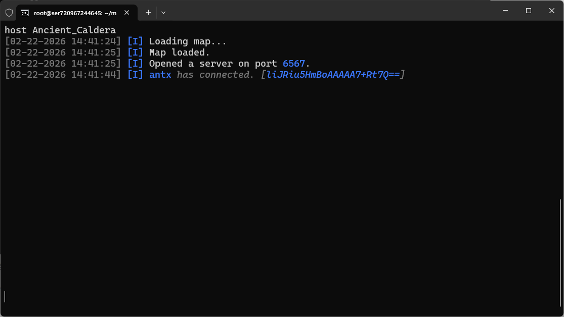 2. 输入host启动服务器并查看看服务端端口,默认端口是6567